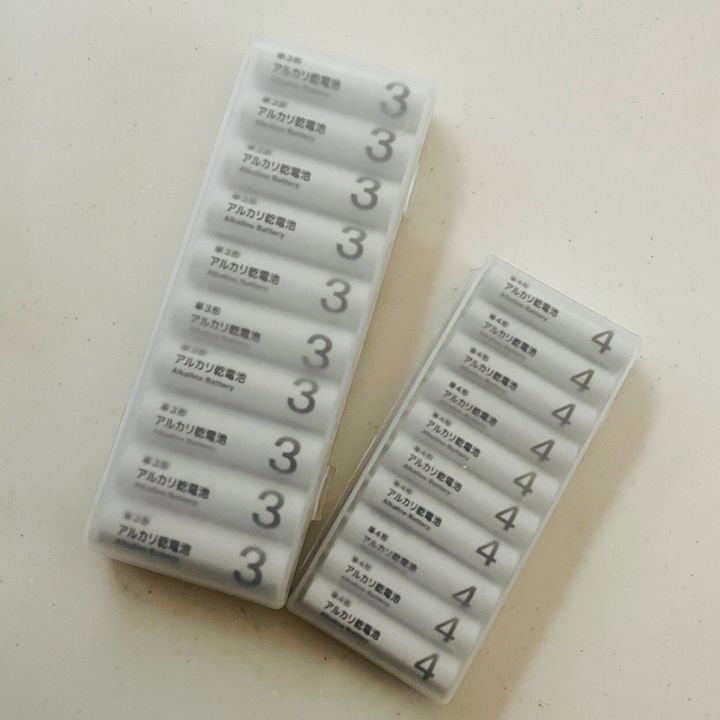 わが家は乾電池を買ってきた際にあらかじめパッケージを剥がして乾電池をストックしていますが、バラバラにしておくと使う本数だけ取り出しやすいメリットの他に乱雑さが目立つデメリットが...。