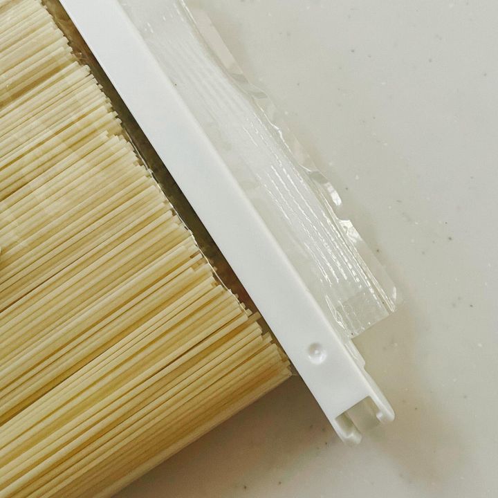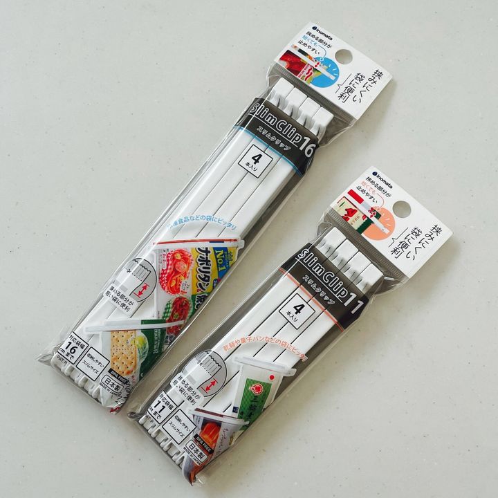 そうめんの高さから袋の口まで幅が小さく、いままでのクリップでは留めづらかったのですが、スリムサイズを使うことで留めることが可能に!