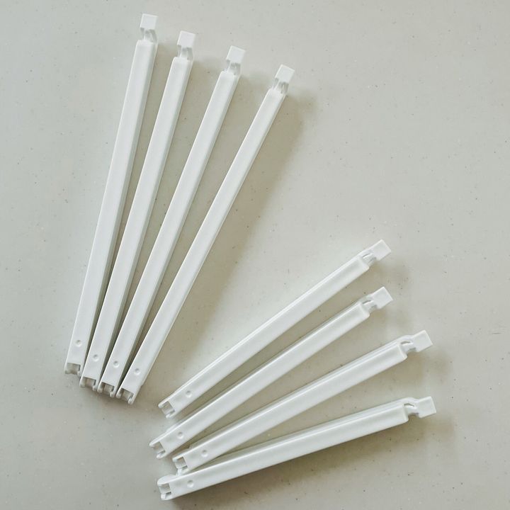 長いほうが冷凍食品などの袋幅16cmまで対応可能で短いほうが乾麺や惣菜パンなどの袋幅11cmまで対応可能。