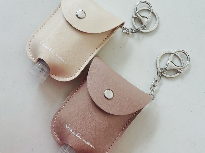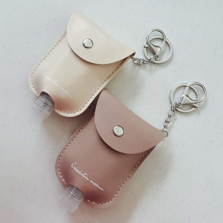 フェイクレザーが高見えする消毒ジェルを入れて持ち運べる可愛いケース型キーホルダー!