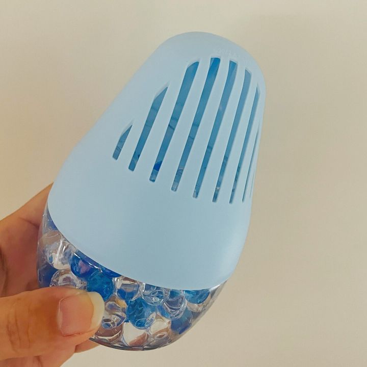 ブルーの容器にブルーの消臭ビーズが入っているこちらは「シャボンの香り」