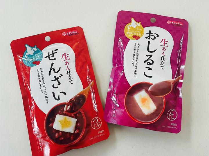 ぜんざいはつぶあん、おしるこはこしあんになっていて、それぞれ160gが入ったパウチ入り。お椀1杯の量なので、食べきりサイズなのが良いですよ。