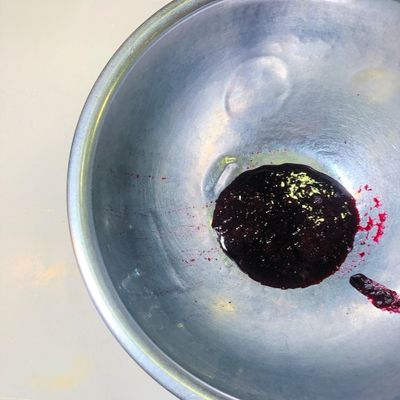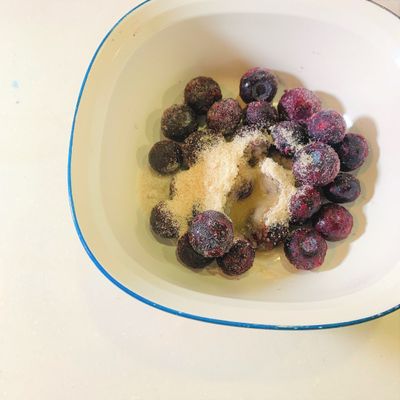 淡い色のクリーム作りも、着色料などを使用したくなかったのでブルーベリーを使いました。