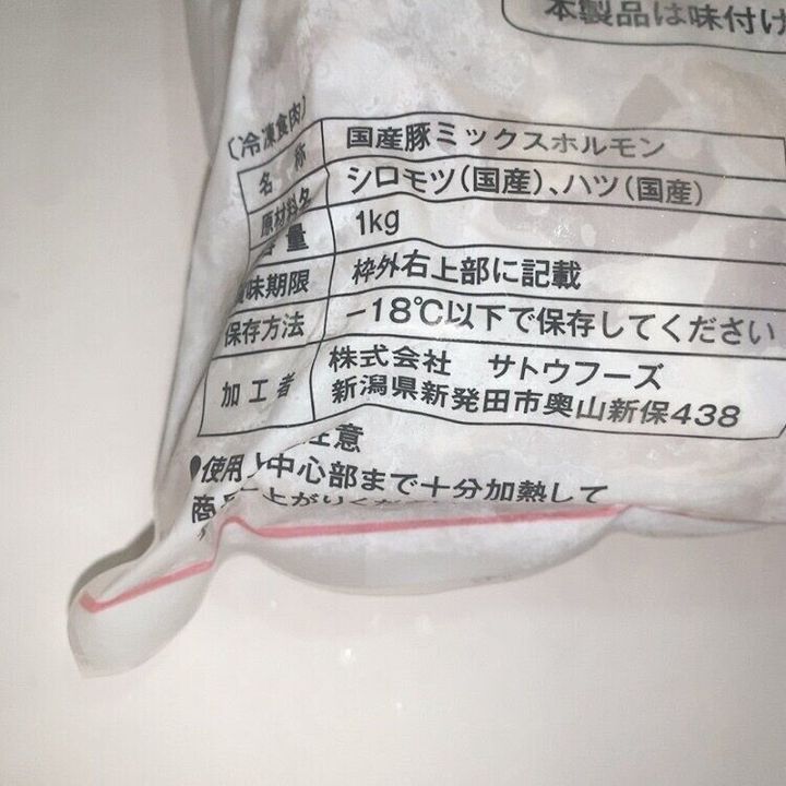 このホルモンミックス、購入時ガッチリ固まっていて調理前の小分け冷凍は難しいです。