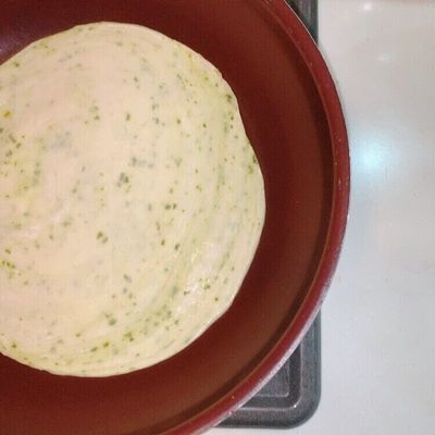 シンプルに、焼いただけでもバジル風味を感じる薄焼き餅です。