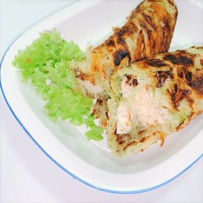 薄焼き餅にはバジル風味がするので、チーズ・ハム・ツナなどを巻くとまるでブリト―のよう。レタスにマヨネーズを加えたら、サラダラップにもなります。