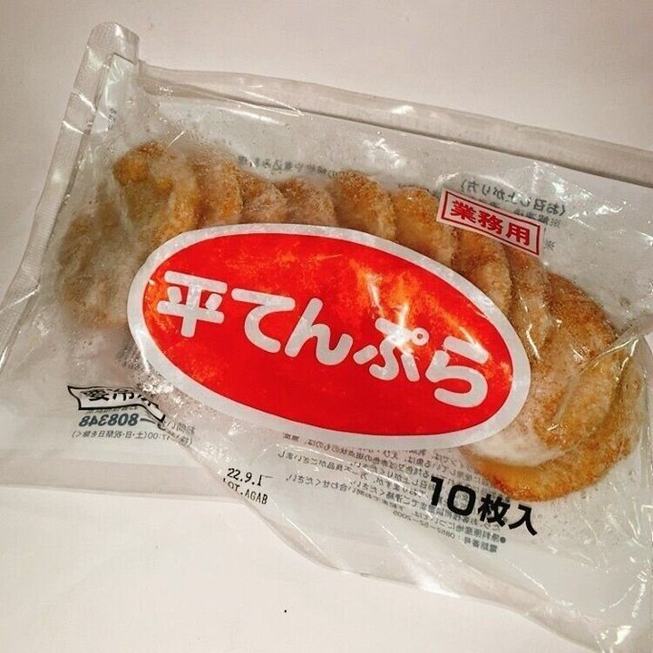原材料名:魚肉、玉ねぎ、キャベツ、人参、でん粉、食塩、砂糖、卵白、食物油脂/加工デンプン、トレハロース、調味料(アミノ酸等)、保存料(ソルビン酸)、キシロース、(一部に小麦・卵・大豆を含む)