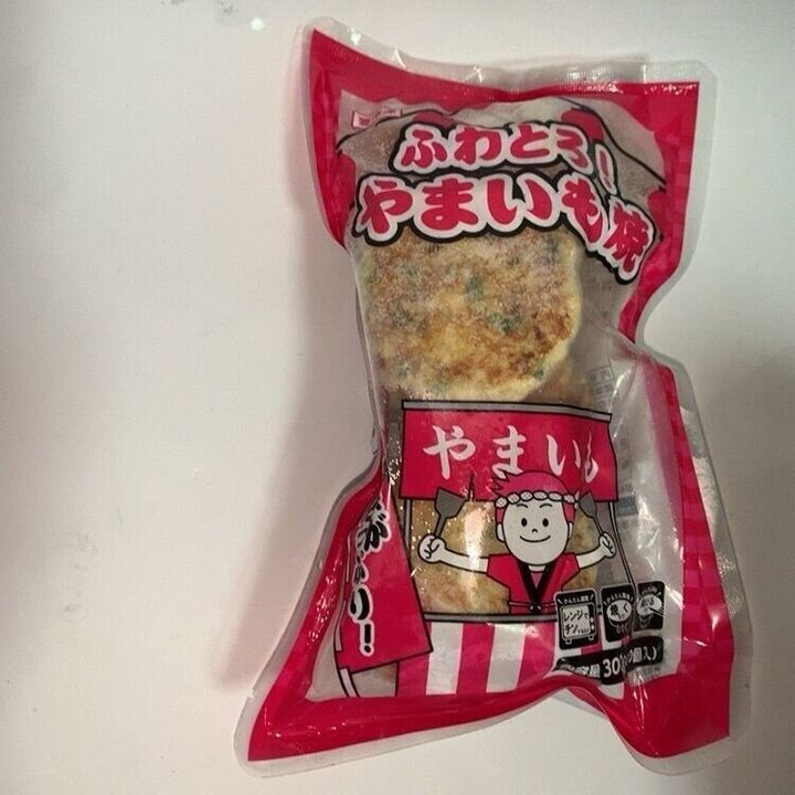 原材料名:野菜(キャベツ、ねぎ、やまいも)、卵、パン粉、タピオカでん粉、ぶどう糖、紅しょうが、食物油脂、かつお風味調味料、昆布エキス、酵母エキス、食塩、醸造酢/調味料(アミノ酸等)、増粘剤(キサンタン)、着色料(クチナシ、アカダイコン)、酸味料、一部に卵・小麦・大豆・やまいもを含む)