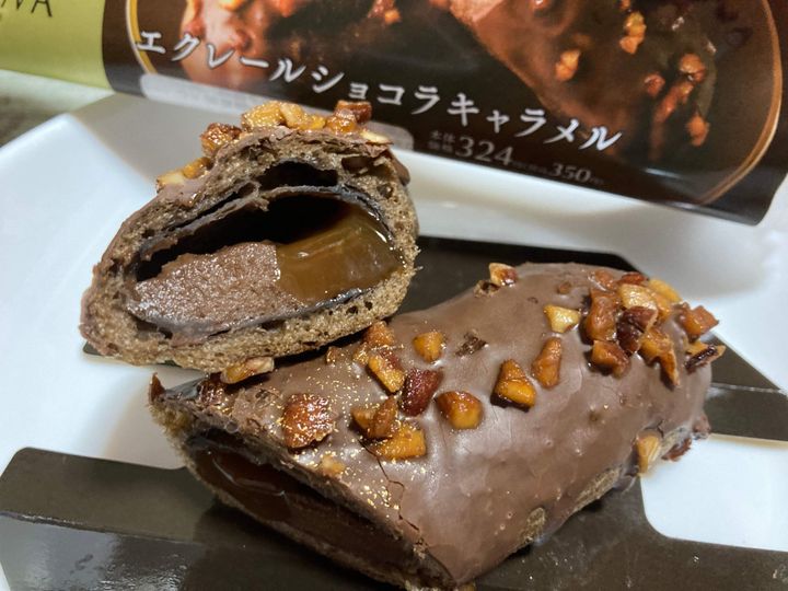 食べてみるとかためのほろ苦チョコカスタードと、甘めのとろっとしたキャラメルソースが相性バツグン!