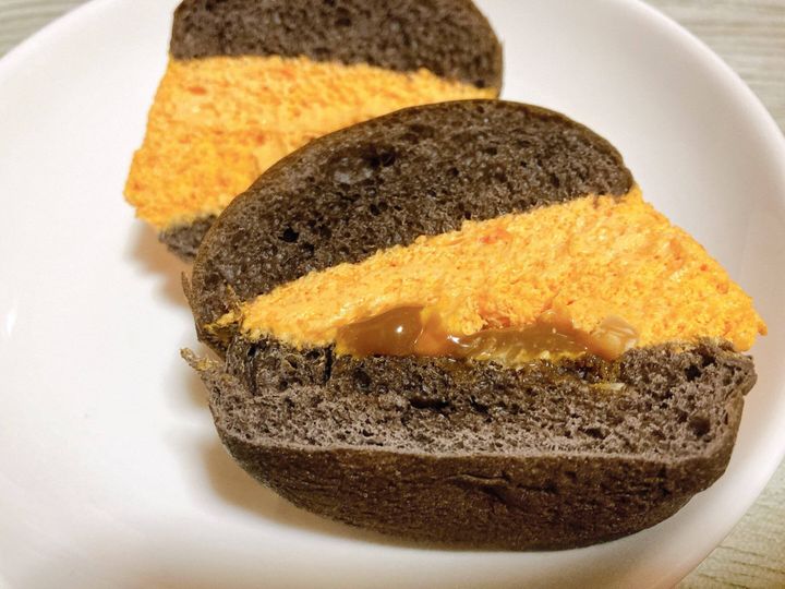真っ黒のブリオッシュ生地に、鮮やかなかぼちゃクリームがたっぷりつまってて甘そうなイメージでしたが、クリームはかぼちゃの濃厚さをしっかり感じます。