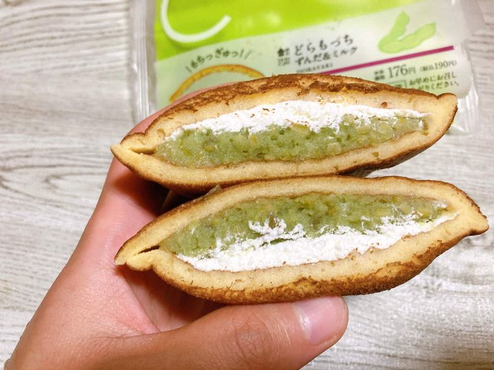 どらもっちの定番のもちもち生地に、食感の残る濃厚ずんだ餡と、ミルククリームが相性ピッタリ!