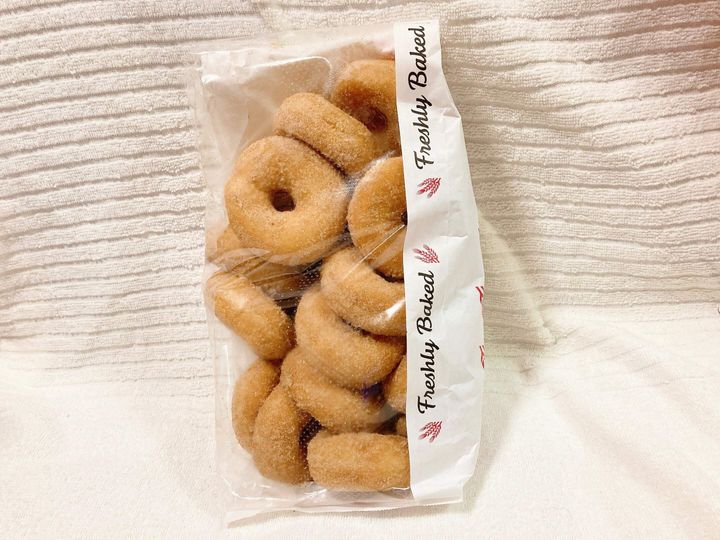 20個入りでコストコにしては直径6cmと小さめのミニサイズ。ドーナツの表面には、シナモンシュガーがかけられていてシナモンがほんのり香ります。