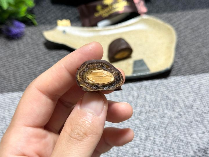 食べてみると砂糖不使用のチョコなのに食べやすく、デーツの甘さも甘すぎずしつこくなく食べやすいです。ねっちりとしたデーツの食感にカリッとした歯ごたえのアーモンドがアクセントになりついもう1つ…と手が伸びてしまうおいしさでした。