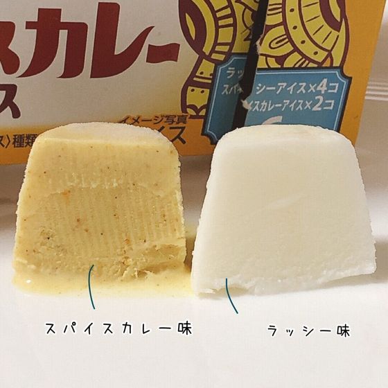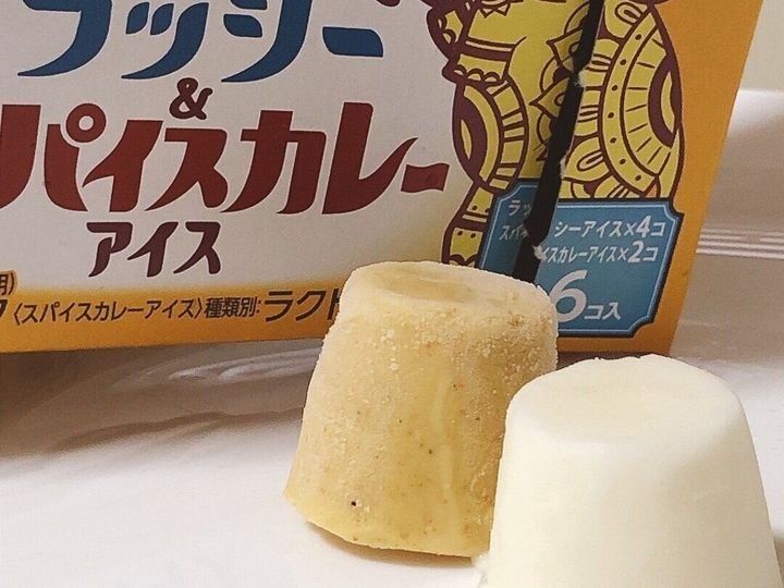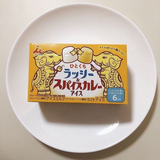 あずきバーでおなじみの井村屋から、スパイスカレーとラッシーがひとくちサイズのアイスになって発売されました。カレーが有名なインドを思わせる象が描かれたカレー色の黄色のパッケージには、「アイスを食べたら踊ろうよ♪」と陽気なコピーがついています。ローソン限定品です。