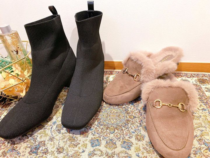 内側にファーがついており、足全体がまるでふわふわファーのラグの上を歩いているかのような優しさに包まれているスペシャルな一足です!