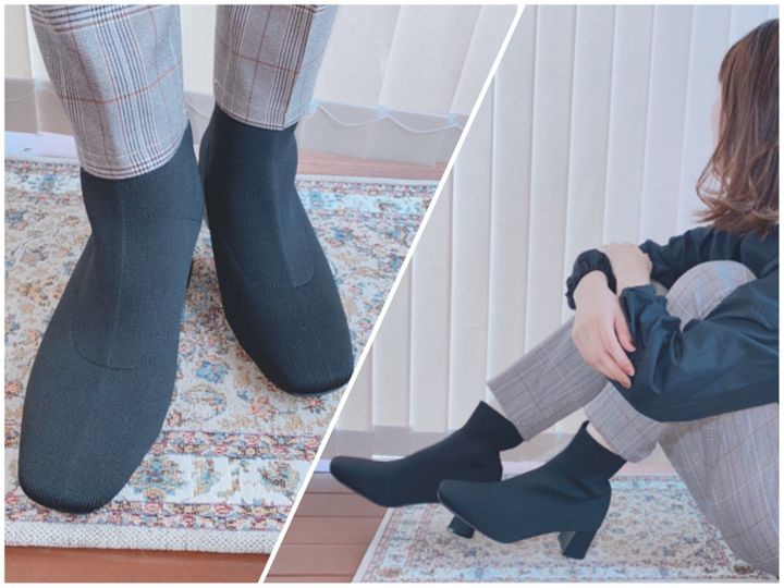 まずはこちらの超絶高見えなブーツ。一見シンプルなブーツですが、こちら珍しい総ニット素材になっております。スクエアトゥのすっきりとしたフォルムで美脚効果が叶う一足です。