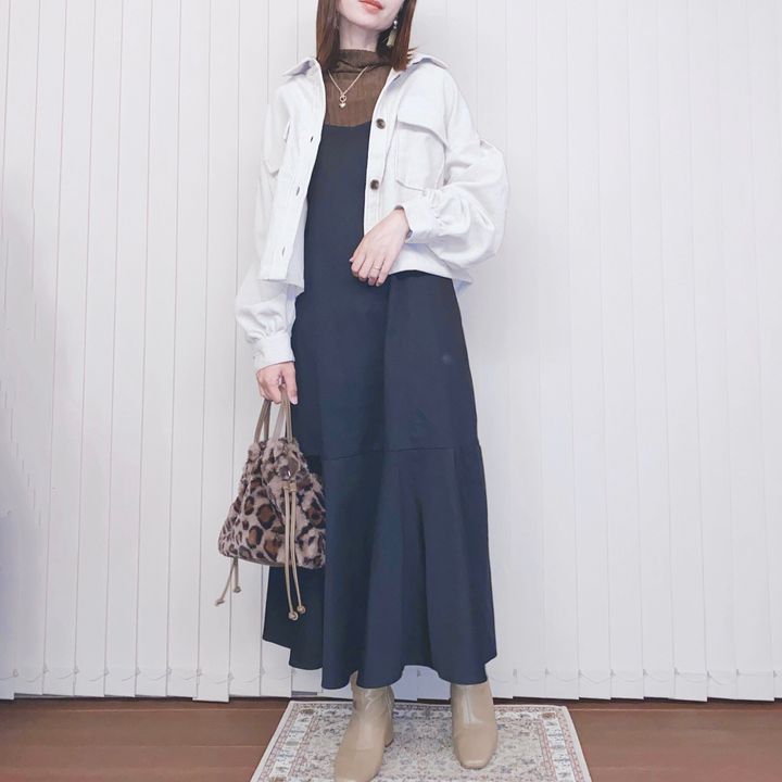 最後はブラックのキャミワンピと合わせてみました。