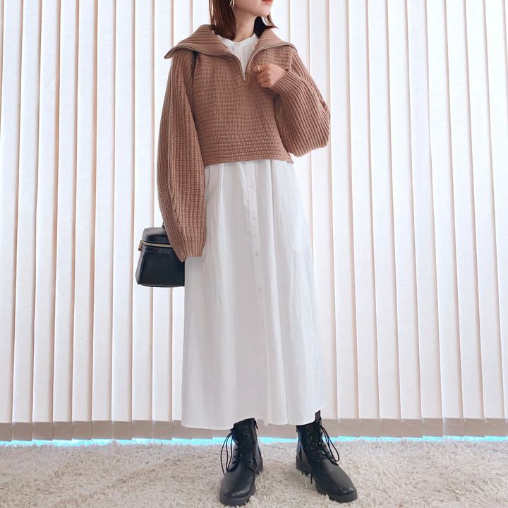 白シャツワンピに重ねたコーデです。