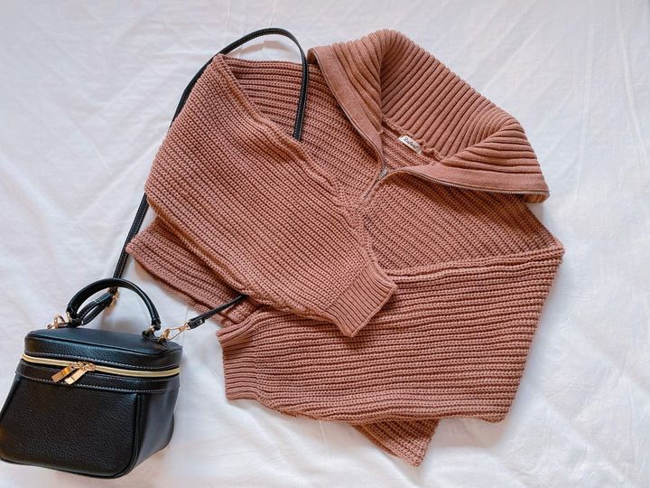 先程挙げた、ビッグ襟、ハーフジップ、ショート丈、ボリューム袖というトレンド要素が全て詰め込まれており、それに加えて淡いココアブラウンのようなお色味がとっても可愛いんです。