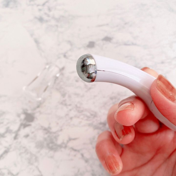 電池式で、ヘッドの銀色の部分を肌に押し当てると自動的に電源がオンになり、微振動が流れる仕組みになっています。