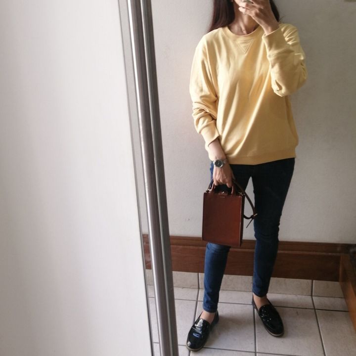 シンプルな形で合わせやすいユニクロのスウェットシャツは、どんなコーデとも合うので1枚持っておくと着こなしの幅を広げてくれますよ。