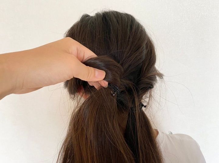簡単!くるりんぱ2つでこなれ感ポニーテールヘアアレンジ!
