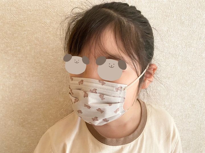 こちらの写真で付けているのは、くまの柄のマスクです。