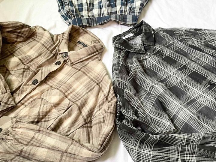 淡色好きさんにはぜひおすすめしたいカラーのチェックシャツです。