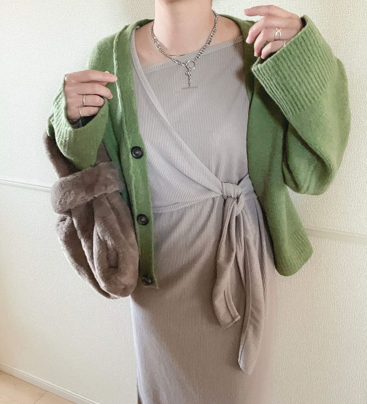 シンプルなワンピースにもこのカーディガンを羽織るだけでこなれ感が出ます!