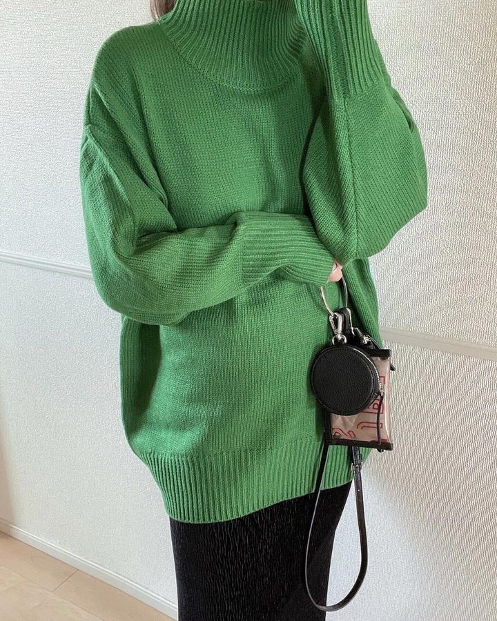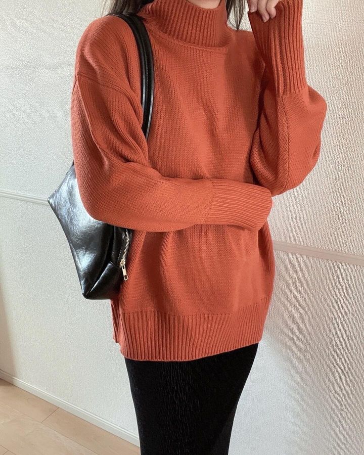シンプルなニットですが、このビビットなカラーでこれを着るだけで主役級のニットです!