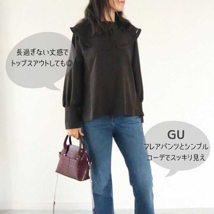 このブラウスは長すぎない丈感でトップスアウトしても素敵です