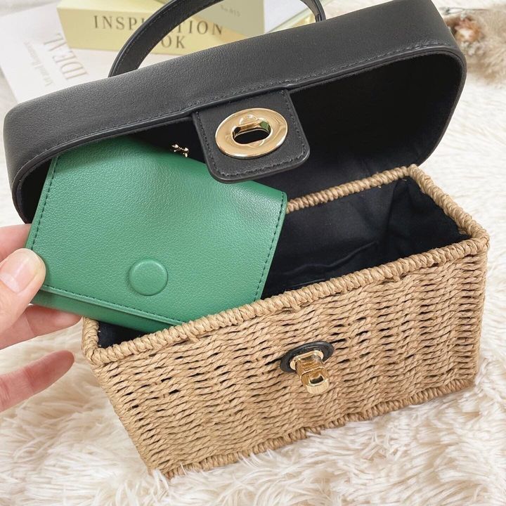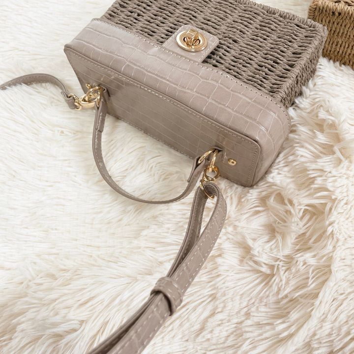 かごバッグというと甘めな印象を抱きますが、ブラックの合皮が締め色になっているのでカジュアルコーデにも使えます。