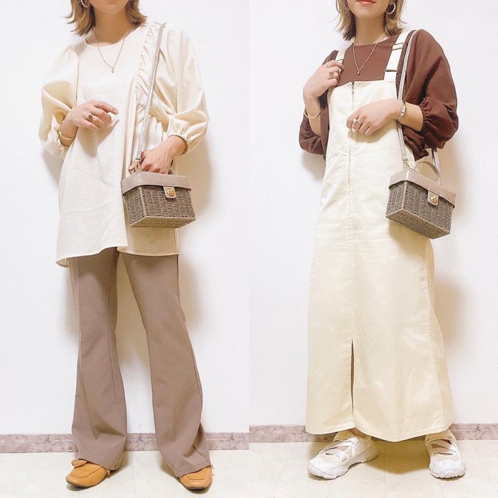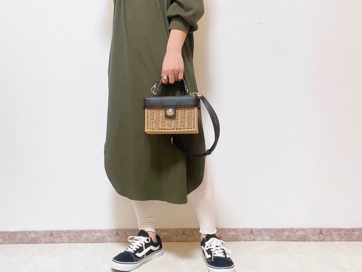 ミニマムなサイズ感がカジュアルコーデに「大人かわいい」テイストを加えてコーデを格上げ。靴とかごバッグの色味を合わせるとコーデに統一感が出ますね。