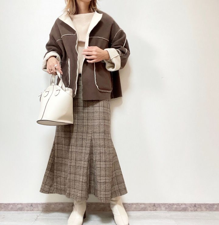 マーメイドスカート合わせは最大限にあざと可愛さを引き出せる、デートコーデにぴったりな組み合わせ。ストンと縦ラインを強調できるボトムスはキレイめなのに可愛い雰囲気が出せます。