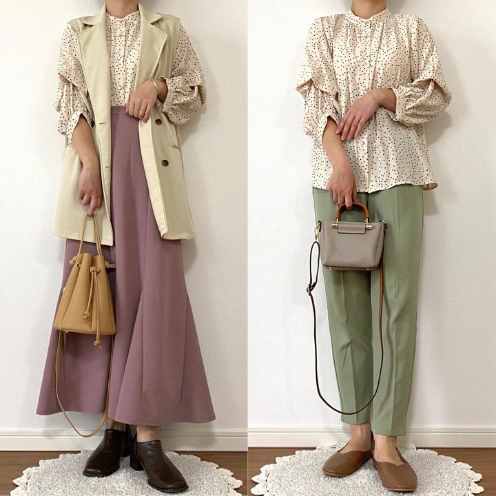 トレンドのジレ合わせもブラウスの甘さとバランスが取れて相性が良さそうですね!