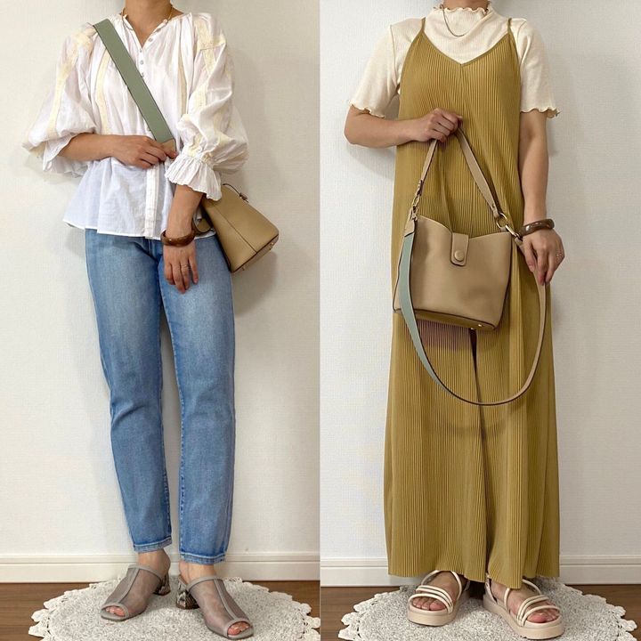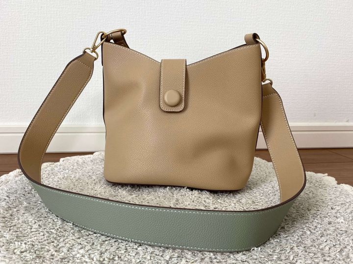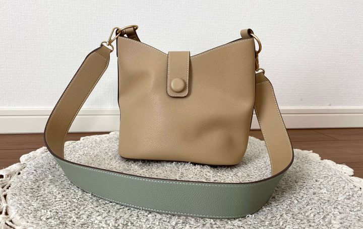 ショルダー紐のグリーンは淡いトーンなので他のカラーと組み合わせるコーデも楽しめそうです。