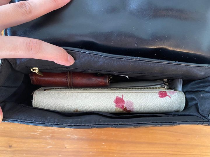 長財布もすっぽりと横に入り、小物ならまだ入りそうな余裕があります。