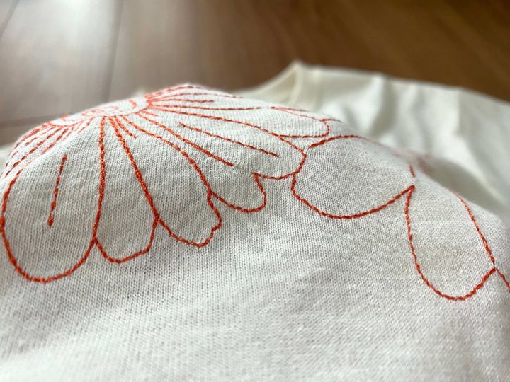 お花の刺繍が女性らしく上品なデザインで、Tシャツですがカジュアルになりすぎないのが嬉しいポイント。
