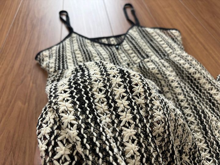 肩紐調整可能なレースのキャミソール型ワンピースです。