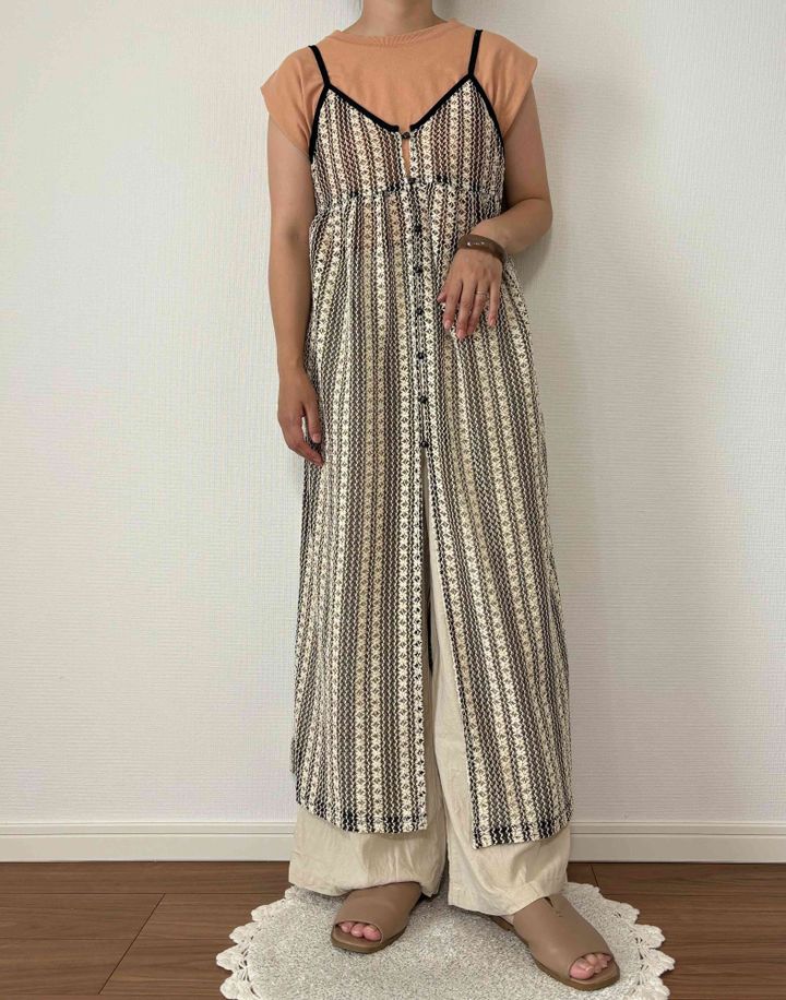 物足りないコーデにプラスするとお出かけコーデへとアップデートしてくれるキャミソールワンピース。