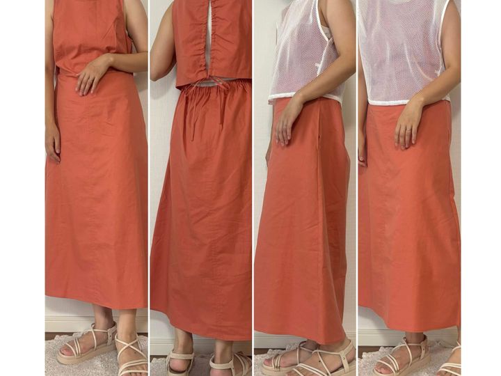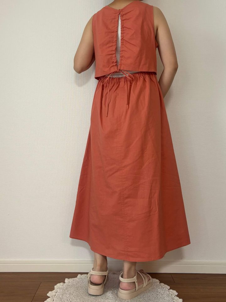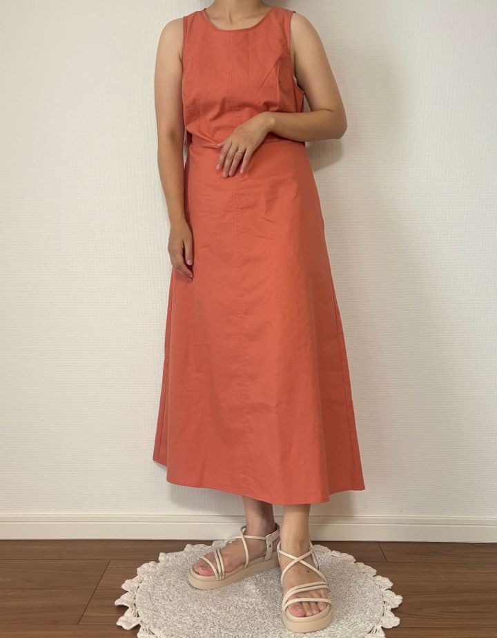 店頭でパッと目を引いたのは夏っぽいオレンジの元気カラーが華やかなノースリーブワンピース!