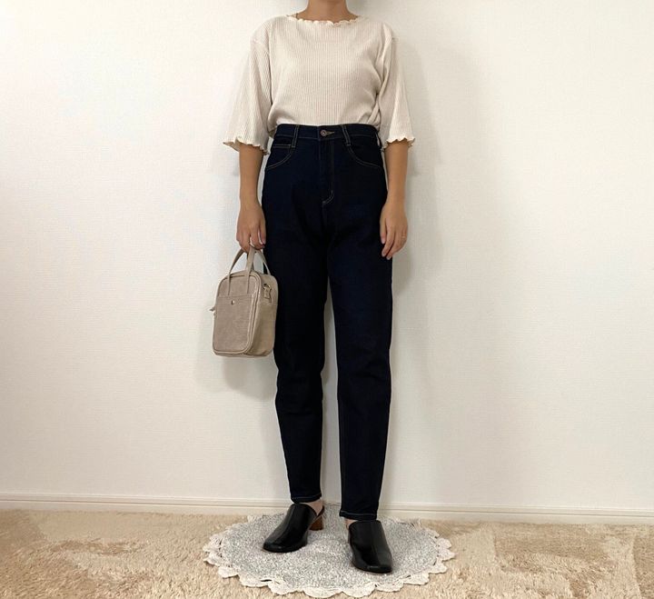 こちらのテーパードシルエットは太ももから足首へと細くなっていくシルエットなので、私の様に太ももの張りが気になる方にもとってもお勧めの神デニムです!