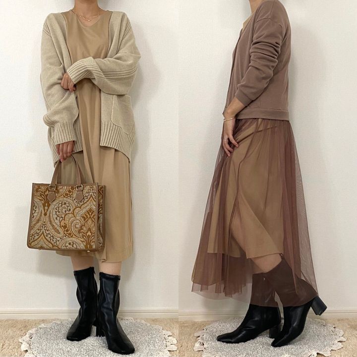 足元がブーツになるだけで一気にコーデに季節感が生まれます。