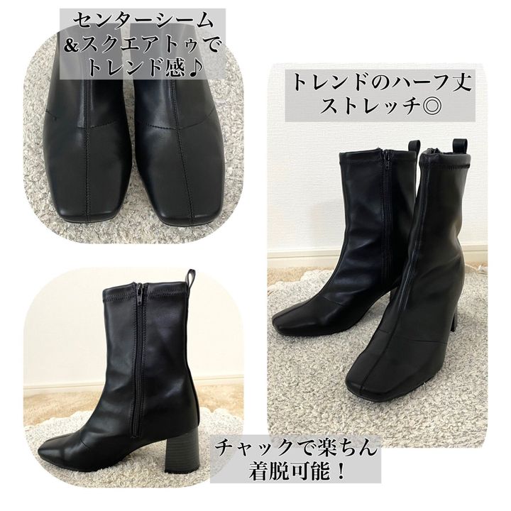 こちらのブーツはスクエアトゥだったり、さりげないセンターシーム、チャンキーヒールなどトレンドが詰め込まれたブーツなので履くだけでよりコーデが洗練されて見えますね!