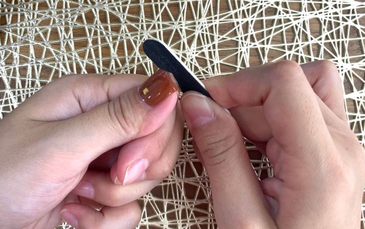 そのあと爪先をファイルで削ってなるべく綺麗に整えます。