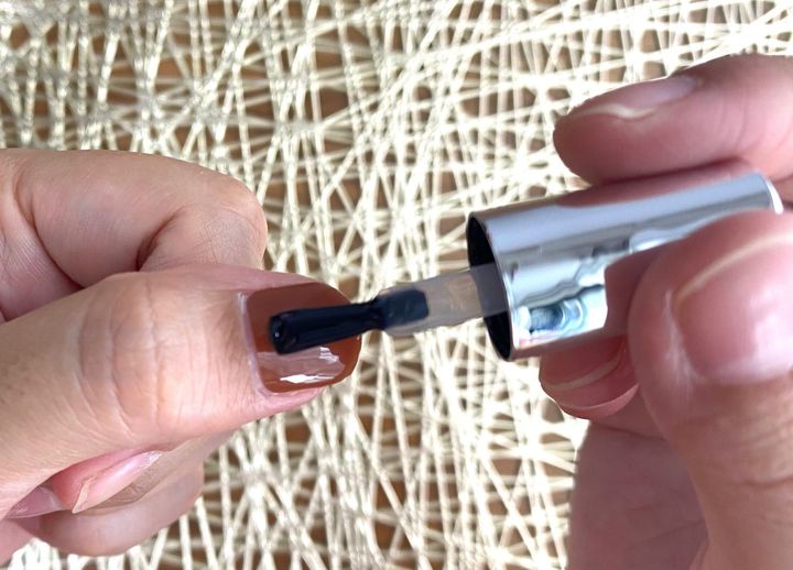 はみ出さないように注意して塗ったら、最初にご紹介したLEDライトを指から3〜5センチ離して照射し硬化していきます。(※LEDライトはパッケージ裏の使用上の注意をよくお読みいただき安全にご使用ください。)
