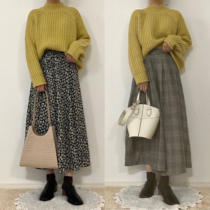 スカートと合わせるだけで普通のニットよりこなれ見え