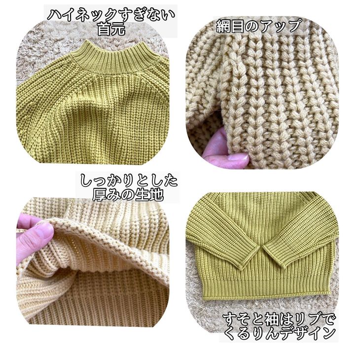 丸顔で普段からハイネックは避けていたのですが、こちらのニットはハイネックでありながらも首元が長すぎず比較的スッキリしたデザインなので違和感なく着ることができました!