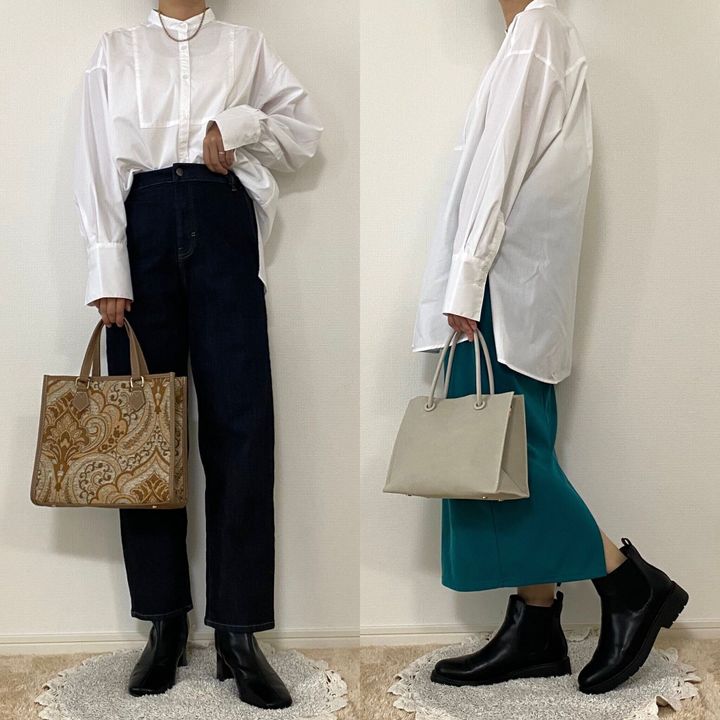 白シャツは季節を問わず使えるアイテム。