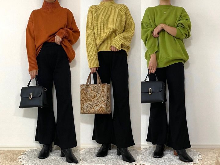 そんな今回はカラーニットをすでにお持ちの方にはもちろん、これからゲットしたいと考えている方にもおすすめの「770円着まわし万能ブラックフレアパンツ」をご紹介します。
